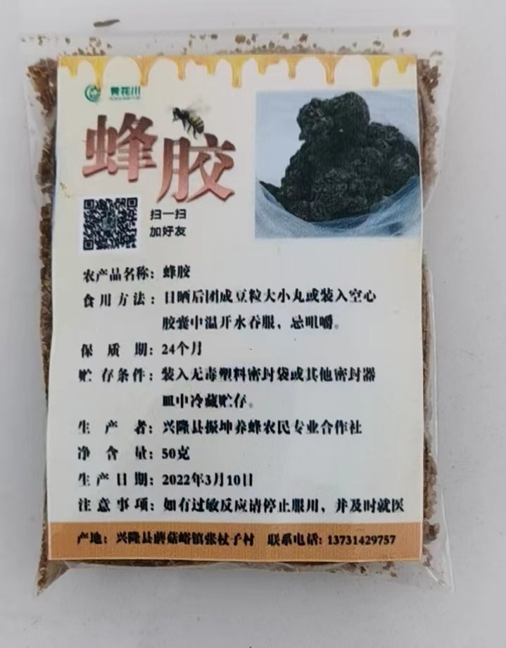 商品名称: 黄花川蜂胶50g塑料密封袋包装_河北承德兴隆特产